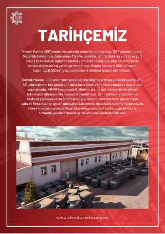 Dirmak Makine 1997 yılında Nevşehir’de temelleri atılmış olup, 1997 yılından itibaren