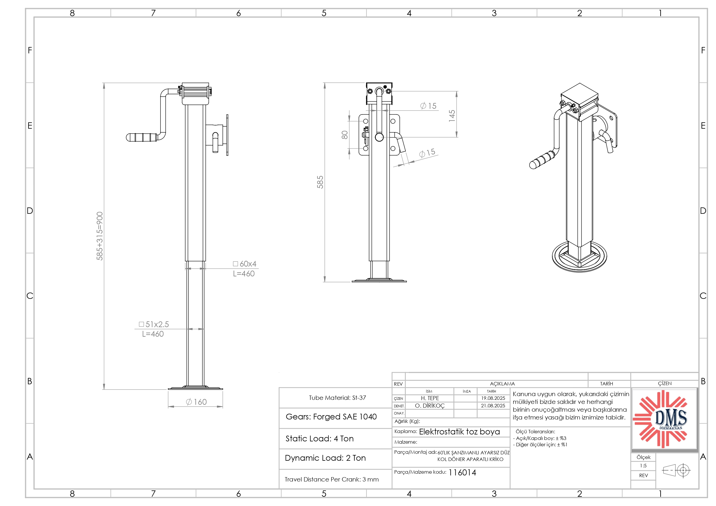 116014 – 60’LIK ŞANZIMANLI AYARSIZ DÜZ KOL DÖNER APARATLI KRİKO
