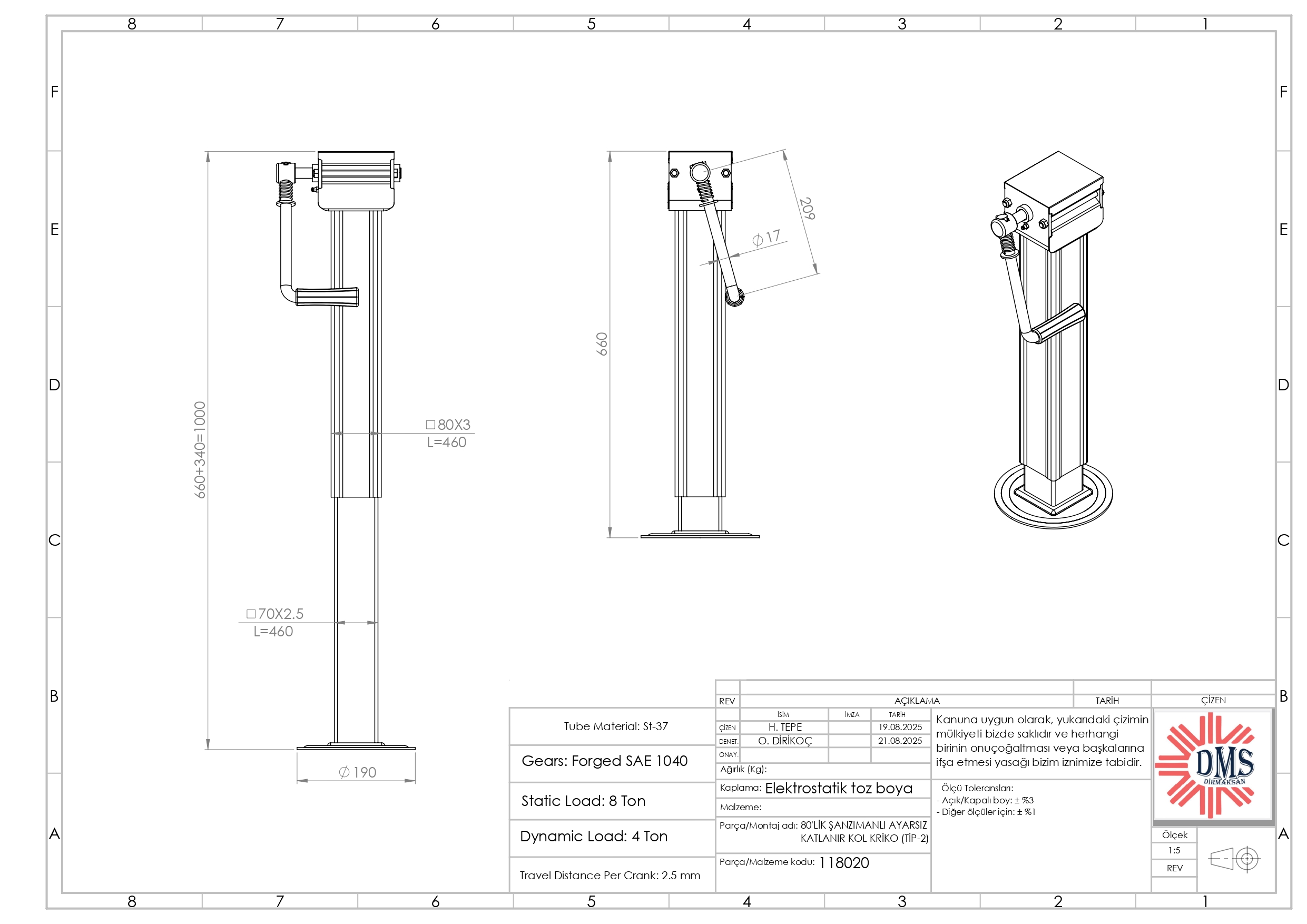 118020 – 80’LİK ŞANZIMANLI AYARSIZ KATLANIR KOL KRİKO (TİP-2)