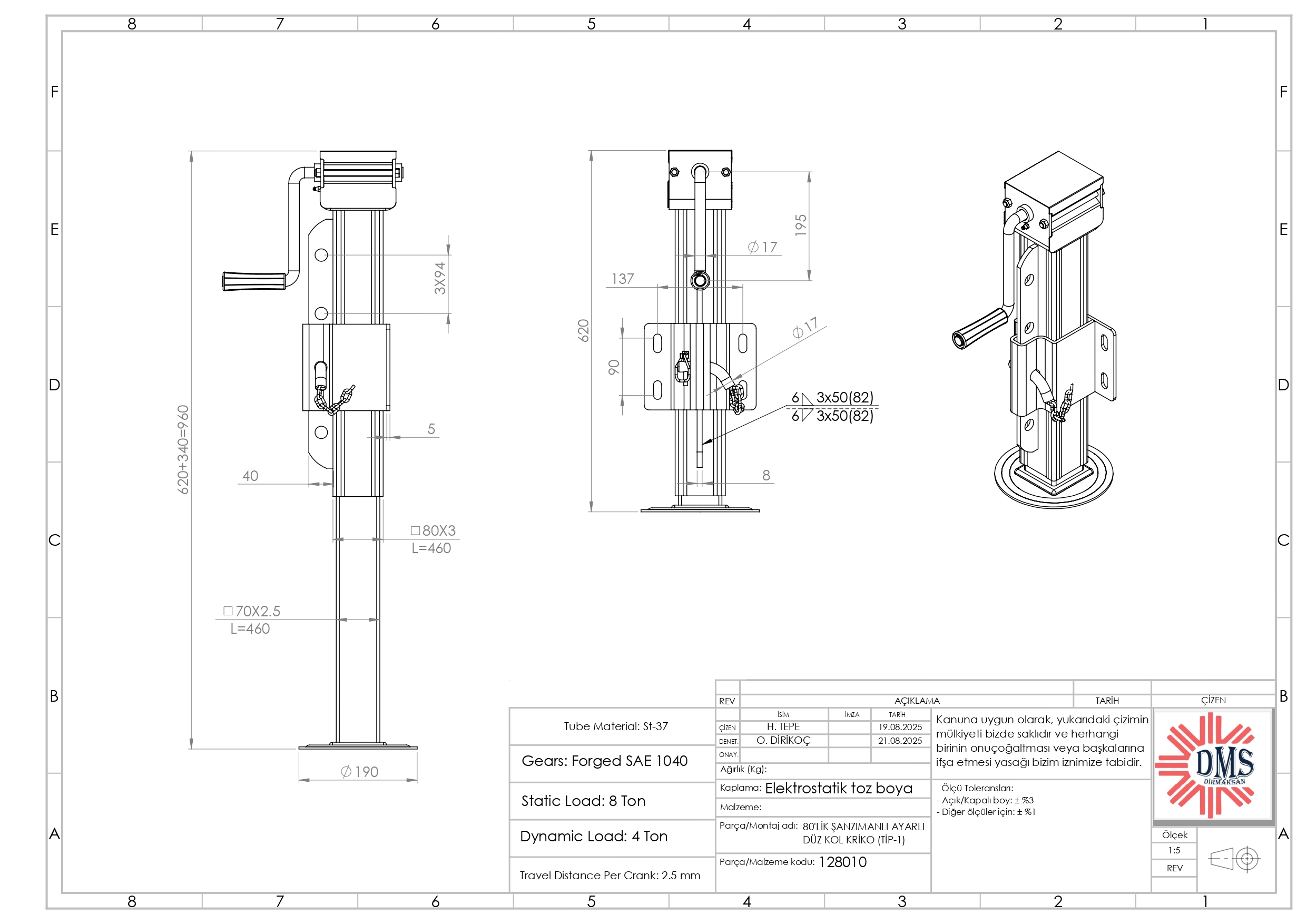 128010 – 80’LİK ŞANZIMANLI AYARLI DÜZ KOL KRİKO (TİP-1)